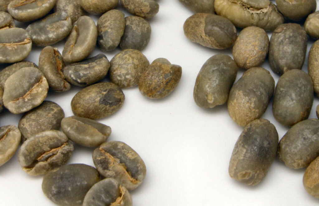 この果実の種の部分がコーヒー生豆となり、それを焙煎することで見慣れた茶色いコーヒー豆となります。